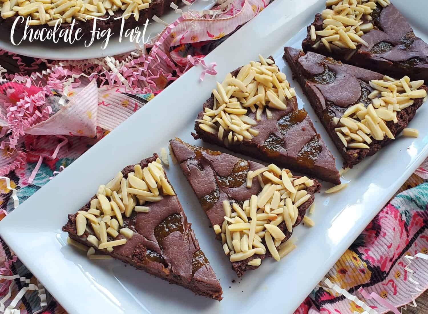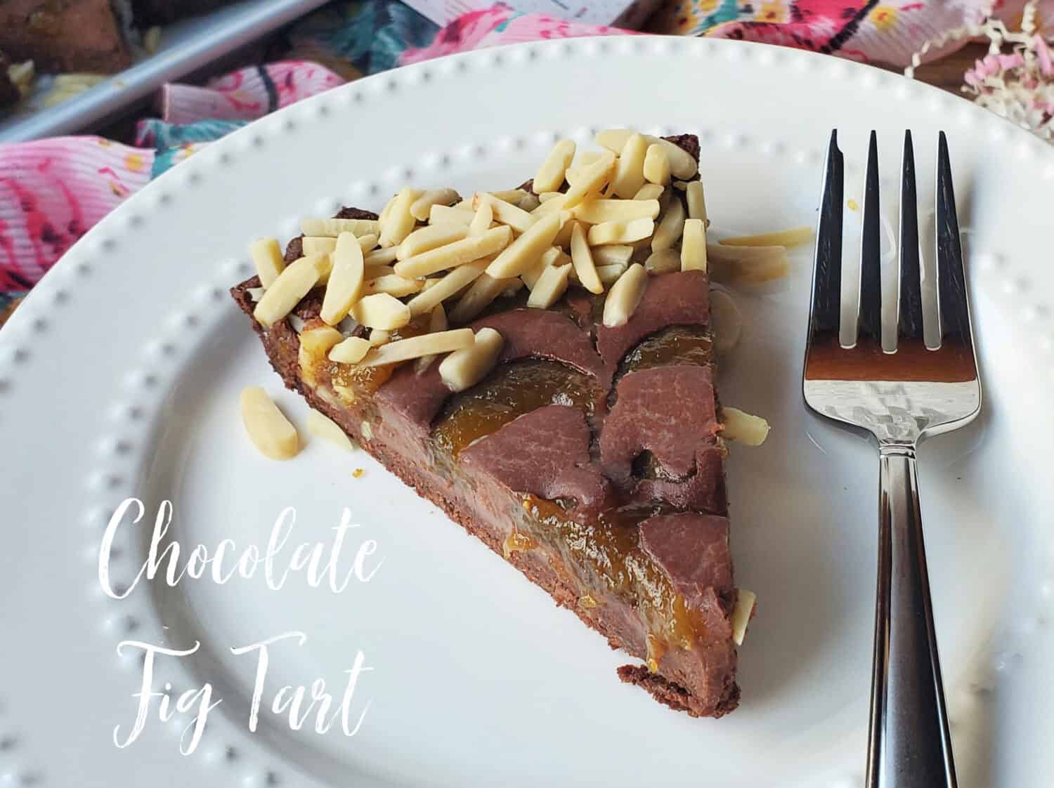 Chocolate Fig Tart with Almond Cocoa Crust is a coconut fat and chocolate ganache in an almond cocoa crust with naturally sweet fig jam. This was originally made vegan, but if that’s not your jam, it is easy to covert.